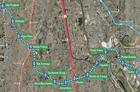 Serviço: O Lote 3 da Linha 2 trata-se do trecho entre as estações Orfanato, Água Rasa e túnel NATM entre o prolongamento existente após a Estação Vila Prudente e o VSE Falchi Gianini. O Lote 4 da Linha 2 trata-se do trecho entre os túneis NATM de Transição junto ao Poço Capitão e VSE Coxim e Estação Anália Franco.